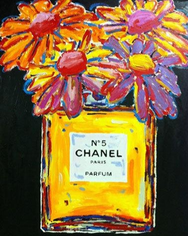 Stango Gallery: Chanel | Black Chanel No.5 Parfum and Daisy Flowers | Chanel Bottle Pop Art | Gallery at Studio Burke, Washington, DC