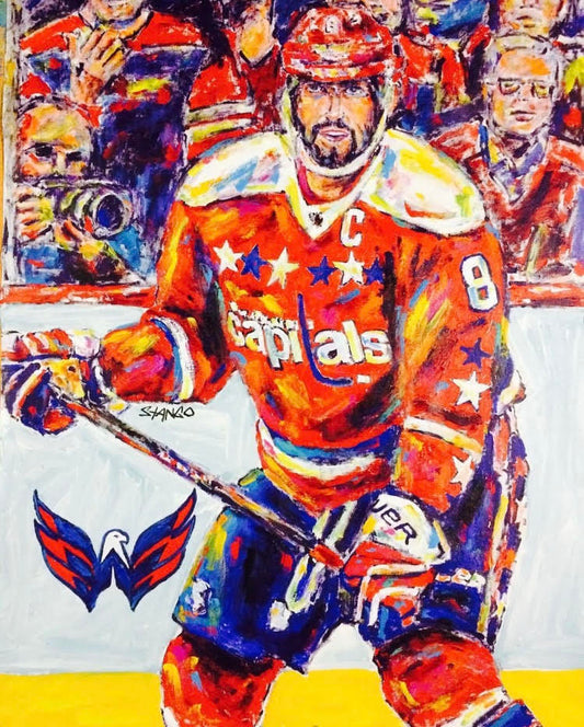 Painting by John Stango | Stango Gallery: American Hockey, Alex Ovechkin | Washington Capitals | USA Patriotic Artist | Washington, DC |
