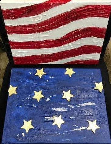 Art | Liberty Diptych Stars and Stripes, Original Mixed Media on Canvas, 12 by 18 inches