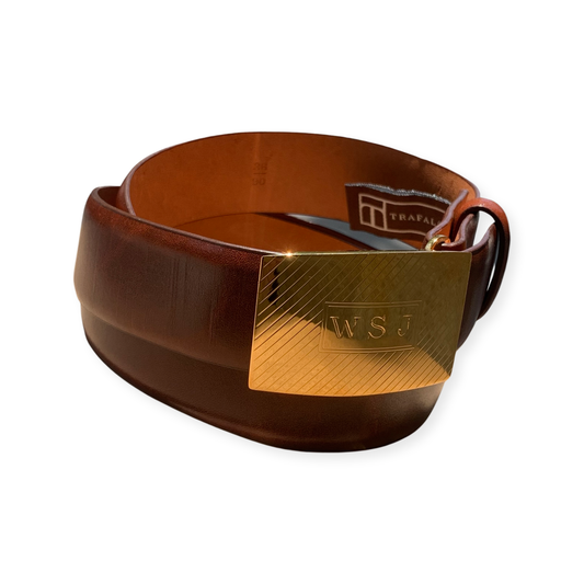 Gold Vermeil Belt Buckle | Strap Size: 1 1/4" | Sterling Silver Belt Buckle with 24 Karat Vermeil | Monogram Hand Engraved | Made in the USA.