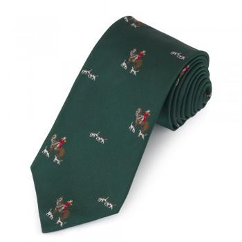 Horse and Hounds Motif, Hunter Green | Hunt Club Silk Tie | Custom Hunt Club Ties | Made in England