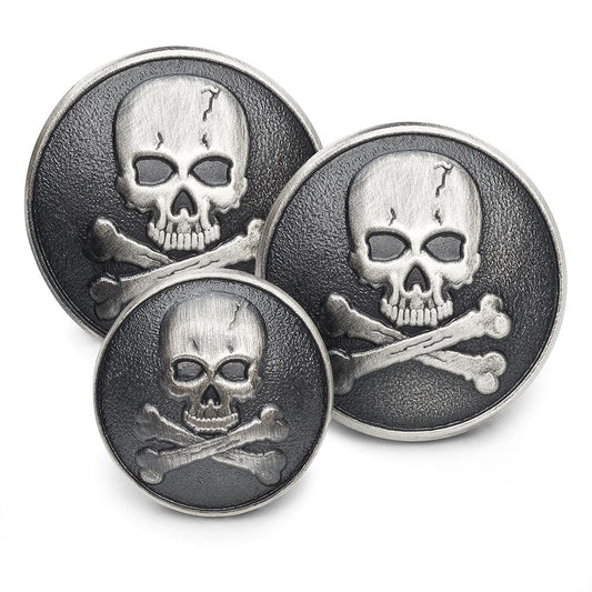 Skull and Crossbones Blazer Buttons | Antique Silver Plated Skull and Cross Bones Blazer Buttons | Made in England | Benson and Clegg, London