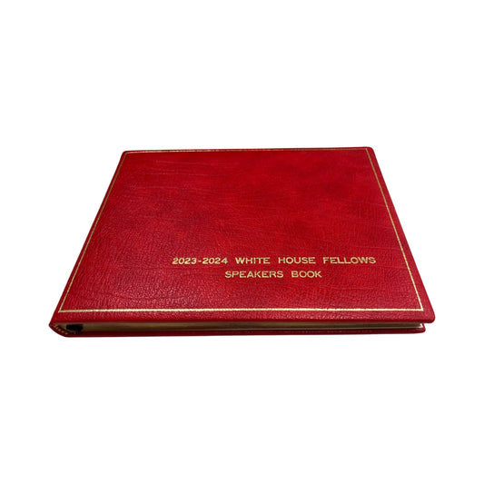 White House Fellows | Bespoke Guest Book | 2023-2024 White House Fellows Speakers Book | Embossed Scarlet Leather | 7 by 9 Inches | Blank Pages | GR79CAB