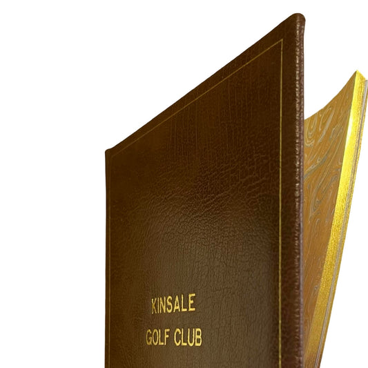KINSALE GOLF CLUB Guests Book | 10 by 8 inches | Vertical | Padded Cover | Brown Buffalo Embossed Calf | Blank Pages | Charing Cross Made in England