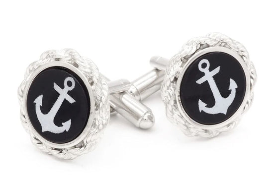 Cufflinks Anchor with Rope Cufflinks | Hand Enamelled | Manufactured in Silver and Navy Finish