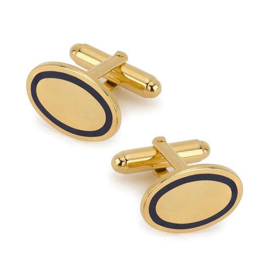 Cufflinks: Oval Enamel Gold and Navy T-Bar Cufflinks | Benson and Clegg London
