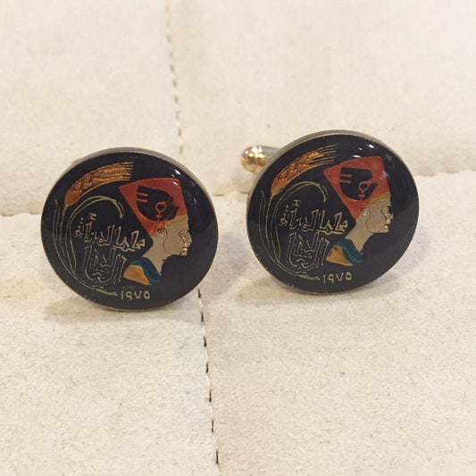 Hand Painted Authentic Coin Cufflinks | Egypt Pharaoh Head Coin Cufflinks | Egyptian Coin | Black | Sterling and Burke | Made in USA