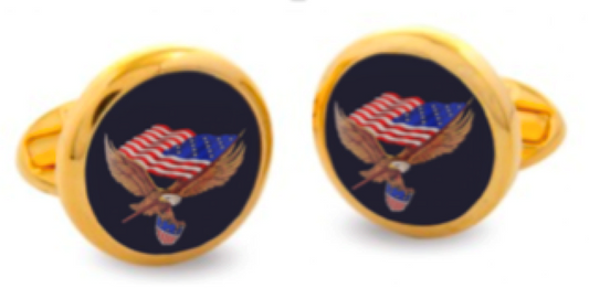 Halcyon Days Patriotic | Cufflinks | American Eagle Head Cufflinks in Black and Gold