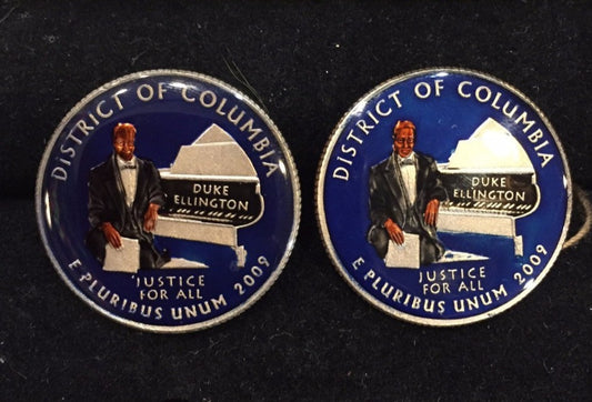Hand Painted Authentic Coin Cufflinks | District Of Columbia | Washington, DC Quarter Coin Cufflinks | Navy | Studio Burke DC | Made in USA