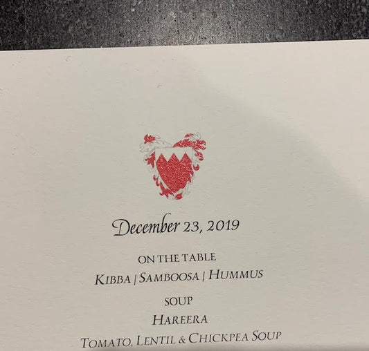 Bahrain Embassy | Menu Card and Place Cards | Ambassador's Residence | December 2019