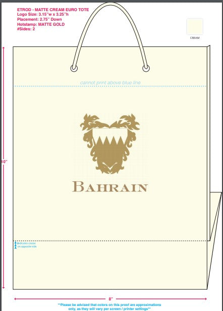 Bespoke Proof | Bahrain Embassy Gift Bag | Gold Seal and Text on Two Locations - Front and Back | Hot Stamp