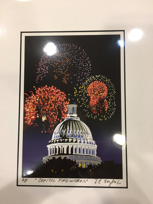 Framed Capitol Fireworks | Capitol Dome Giclee by Joseph Craig English | 13 by 16 Inches