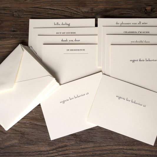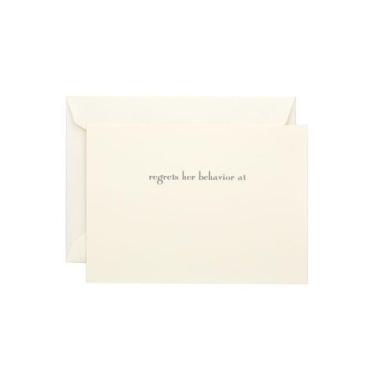 "regret their behavior at" | Regret Behavior Cards | Engraved Card Stationery | Set of 10