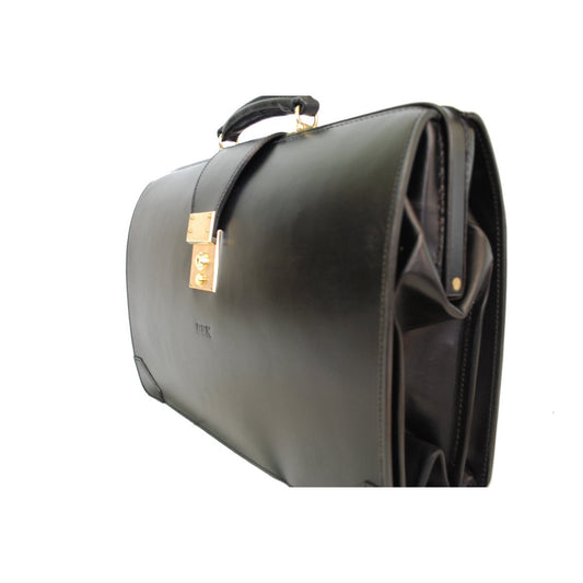 Top Frame Briefcase | Black Bridle with Green Skiver | English Bridle | Hand Stitched in England