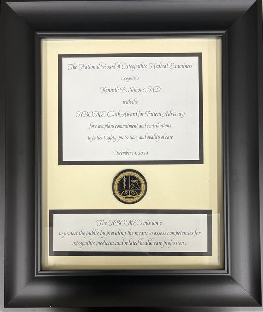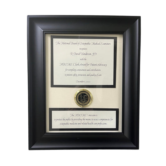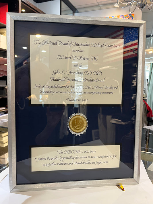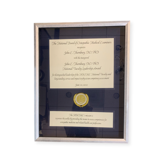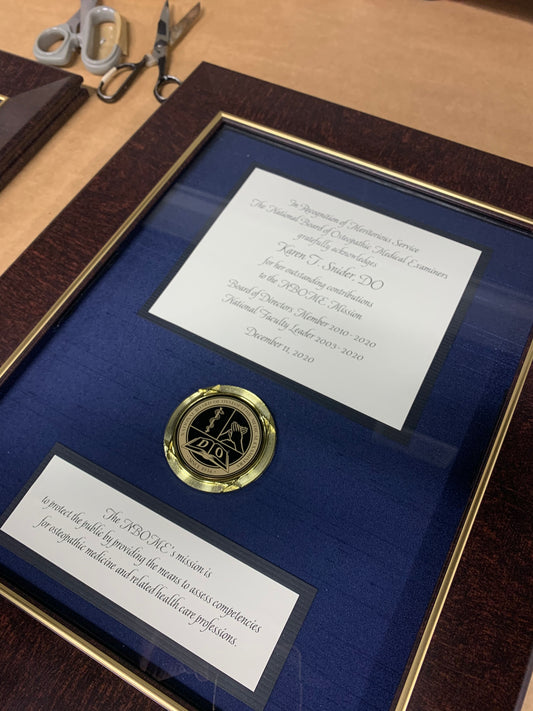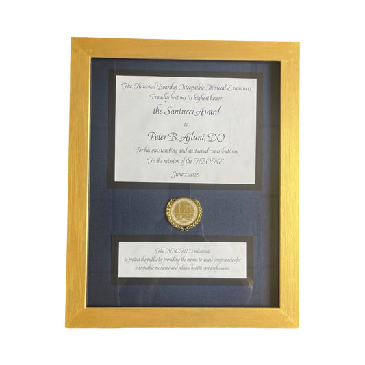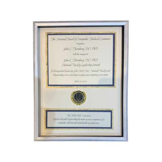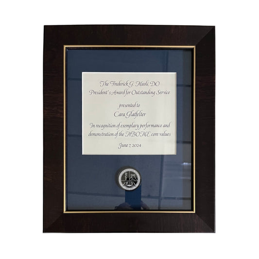 Bespoke Awards for NBOME | Awards in Gold, Wood, Black Frame | Superior Quality Bespoke Award | Custom Framed Award | Certificate | Studio Burke DC