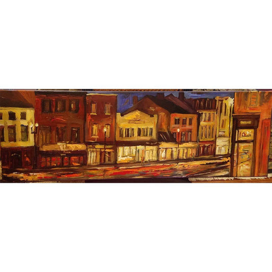 Blue Evening, Georgetown University III | M Street | Original DC Themed Painting by Zachary Sasim | 12" by 36" | Commission