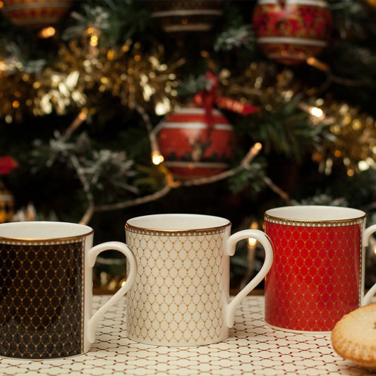Halcyon Days Antler Trellis and Stag Mugs in Red | Set of 2 | Holiday Mugs
