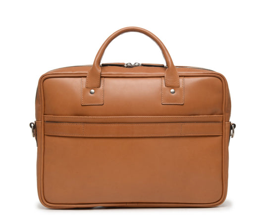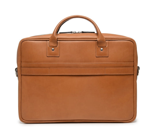 The Jackson 17" Leather Brief Bag with Zipper | Full Grain Leather | Korchmar | London Tan Leather with Nickel Fittings