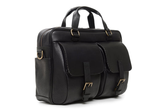 Barton Leather Brief Bag | Grain Leather | Korchmar | Black Leather with Nickel Fittings | Initials Included