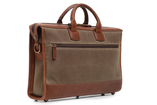 Sawyer Canvas & Leather Zippered Brief | Waxed Canvas | Korchmar | Initials Included