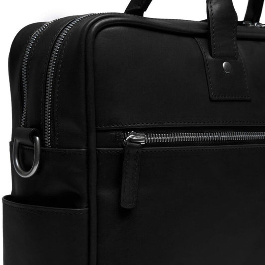 Redford Leather Brief Bag | 16" Zipper Briefcase | Initials Available | Korchmar Leather | Black with Nickle Zipper