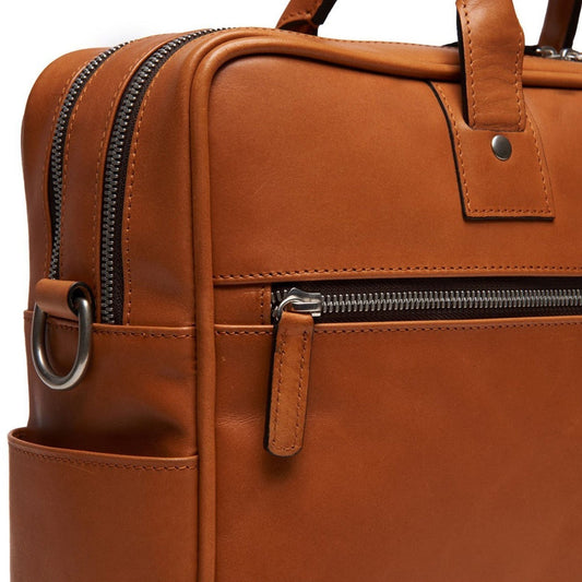 Redford Leather Brief Bag | 16" Zipper Briefcase | Initials Available | Korchmar Leather | Tan with Nickle Zipper