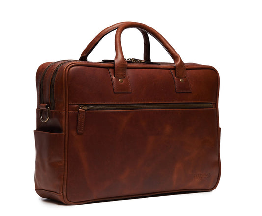 Redford Leather Brief Bag | 16" Zipper Briefcase | Initials Available | Korchmar Leather | Traditional Brown