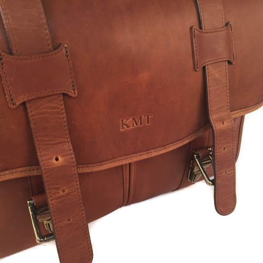 Garfield Leather Brief Case | Flap Over Computer Bag in Tan Leather | Initials and Gift Wrap | Korchmar Leather |
