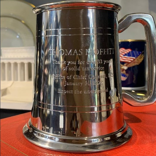 Potomac | Hand Engraved Solid Pewter Tankard | Potomac | Crest and 4 Lines of Hand Engraving | Patriotic Gift Wrap