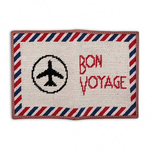 Needlepoint Collection | US Airmail Bon Voyage Needlepoint Passport Case | US Passport Holder | Khaki