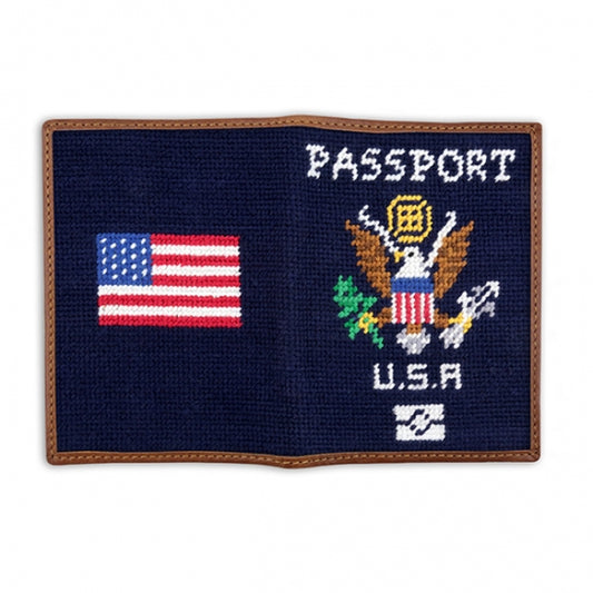 Needlepoint Collection | American Flag Needlepoint Passport Case | US Passport Holder | Navy