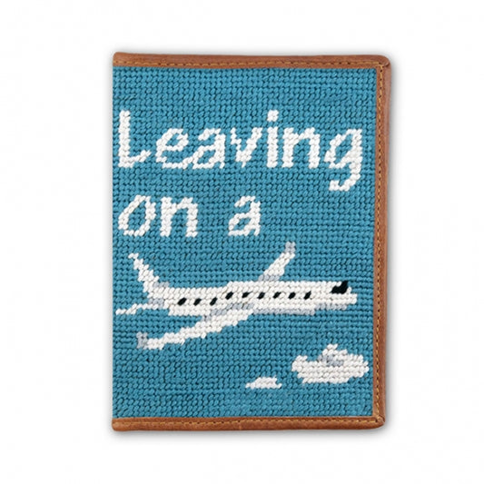 Needlepoint Collection | Leaving On A Jet Plane, Blue Needlepoint Passport Case | US Passport Holder