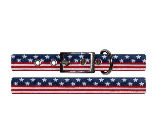 Needlepoint Dog Collar | Custom Size | USA Flag Collection | Patriotic US Flag Needlepoint Dog Collar