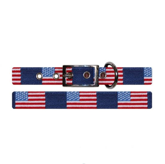 Needlepoint Dog Collar | Custom Size | US Flag Patriotic Collection | American Flag Needlepoint Dog Collar