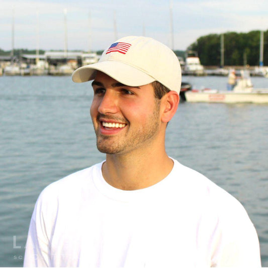 Needlepoint Collection | American Flag Needlepoint Hat | USA Flag Ball Cap | Khaki Stone