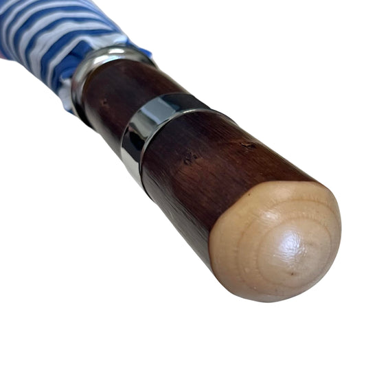 The Steele Golf Umbrella | Chestnut Straight Handle Golf Umbrella | Blue and White | The Finest Quality | Made in England
