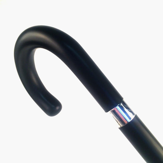 Black Walking Stick Crook Handle Cane | Elegant Cane with Sterling Silver Band | Made in USA