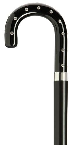 Ebony Finish Crook Handle Cane / Walking Stick | Elegant Cane with Silver Band | Made in USA | Sterling and Burke Ltd