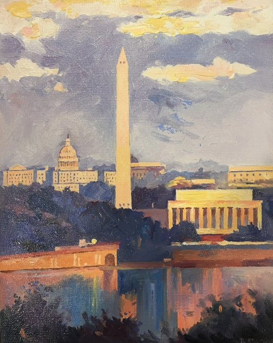 Monuments at Dusk | Washington, DC Monuments Art | Original Oil and Acrylic Painting on Canvas by Zachary Sasim | 11" by 13.5" | Commission