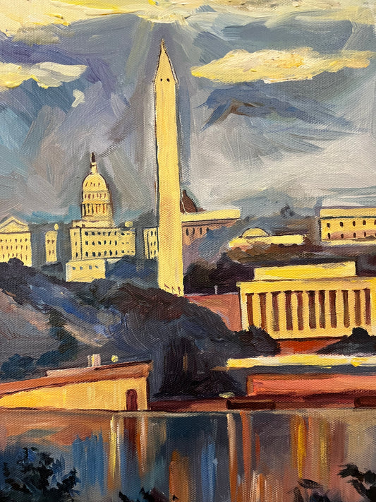Monuments at Dusk | Washington, DC Art | Original Oil and Acrylic Painting on Canvas by Zachary Sasim | 11" by 13.5" | Commission