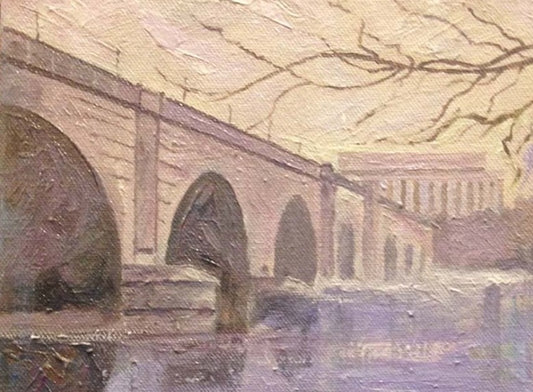 Memorial Bridge with Ice | Washington, DC Art | Original Oil and Acrylic Painting by Zachary Sasim | 8" by 8" | Zachary Sasim | Commission