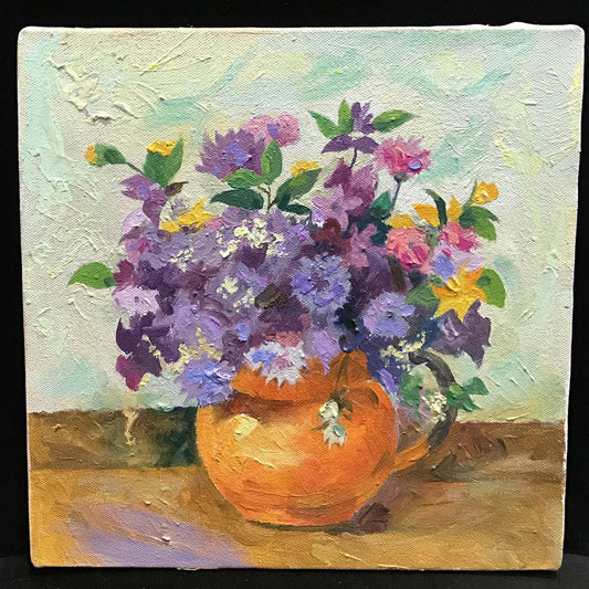 Purple Flowers | Original Oil and Acrylic Painting on Canvas by Zachary Sasim | 10" by 10" | Commission