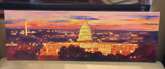 Red Capitol Panorama | Washington, DC Art | Original Oil and Acrylic Painting on Canvas by Zachary Sasim | 12" by 36" | Commission