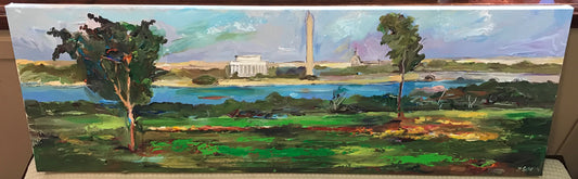 Red DC Panorama | Original Oil and Acrylic Painting on Canvas by Zachary Sasim | 12" by 36" | Commission