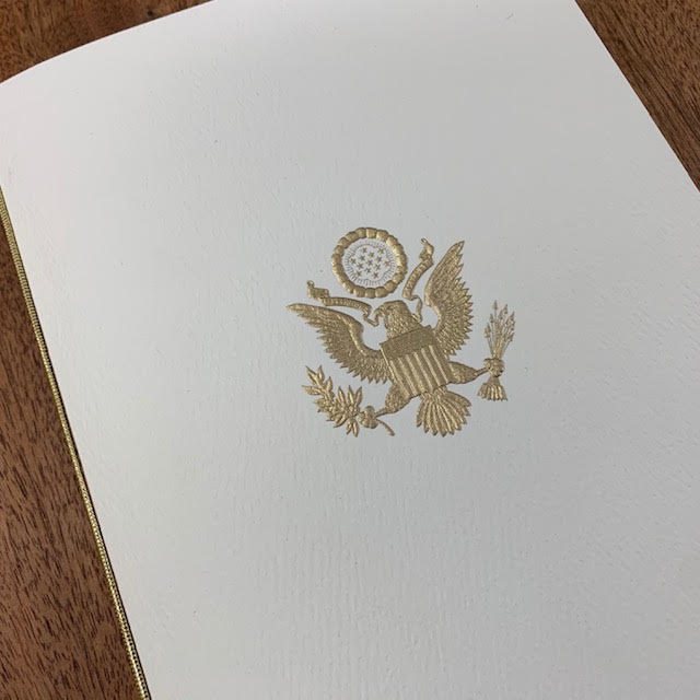 Program Cover | Bahrain Embassy Seal | Gold Hand Engraved Seal on Cover | Highest | Diplomatic Program Folder | Studio Burke Ltd | Produced in our Production Facility | Proudly Made in America