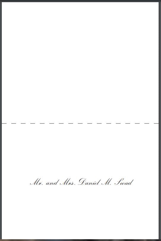 - Engraving: on the face of the folded informal note with text and blank envelope