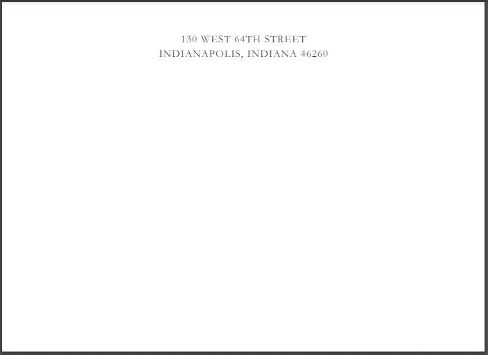 - Engraving: invitation with text and outer envelope with engraved return address on flap