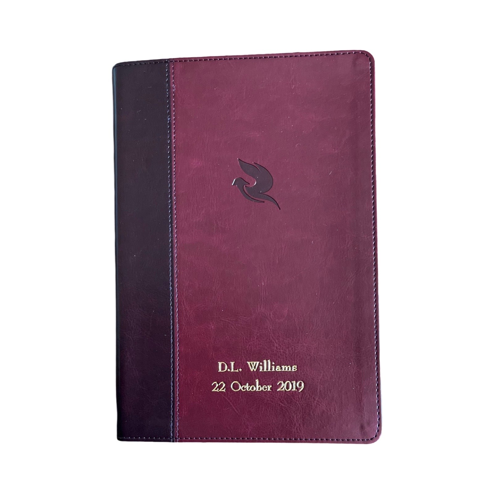 " Bible | Stamped with Name and Date | Gold Stamp | Bottom Center | Vintage Font