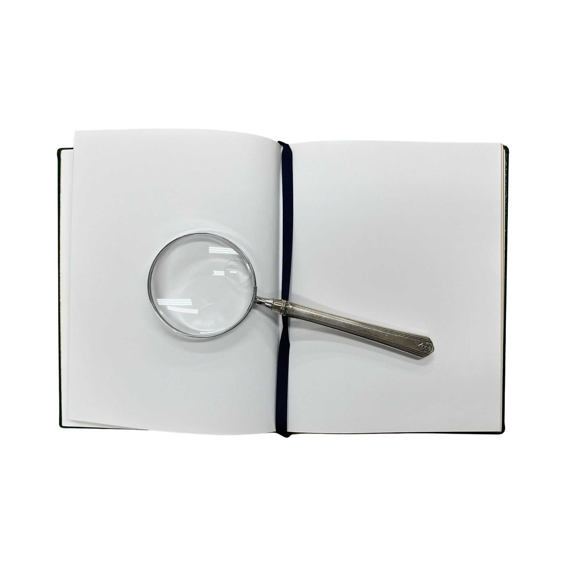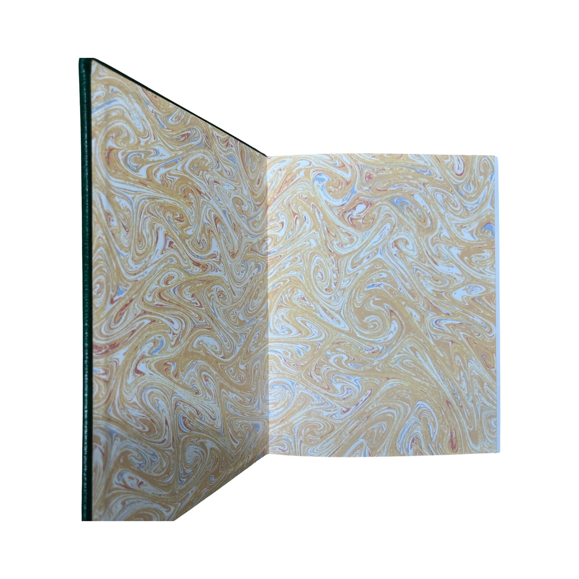Buffalo Calf with off-white blank pages. This is the second largest size page in the collection. Off-white paper with ribbon marker and gold edging on pages. Made in England with English made materials, using the highest quality bookbinding techniques. Pages will never fall out and book will not wear out. Wonderful notebook for work or personal journaling. Personalization of initials, name and/or logo available. Makes a very nice business gift.