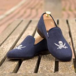 Custom Prince Albert Men's Slipper Shoes | Skull and Swords Embroidered Shoes | Handcrafted | Made To Order